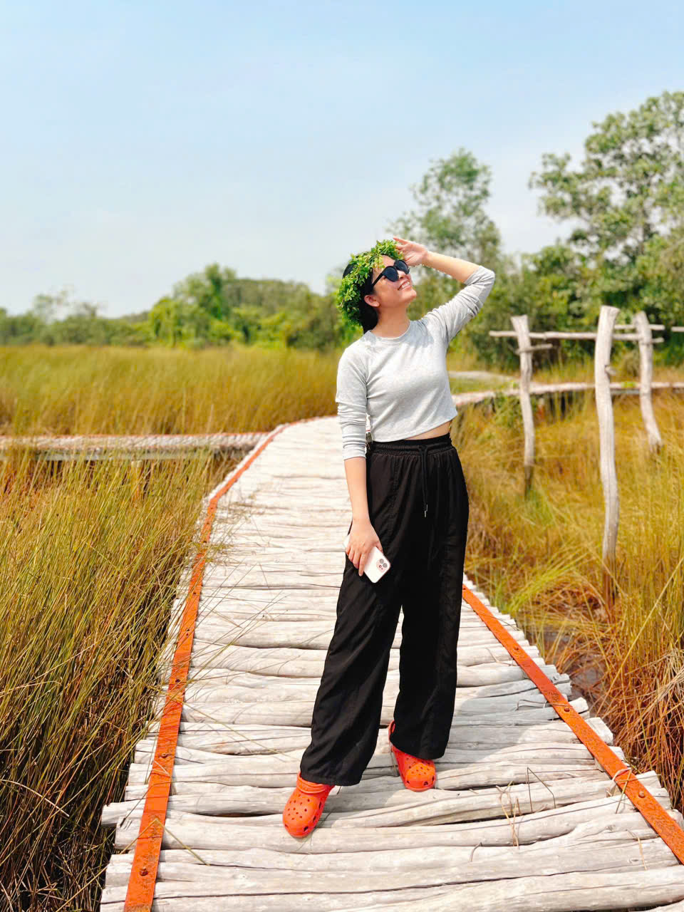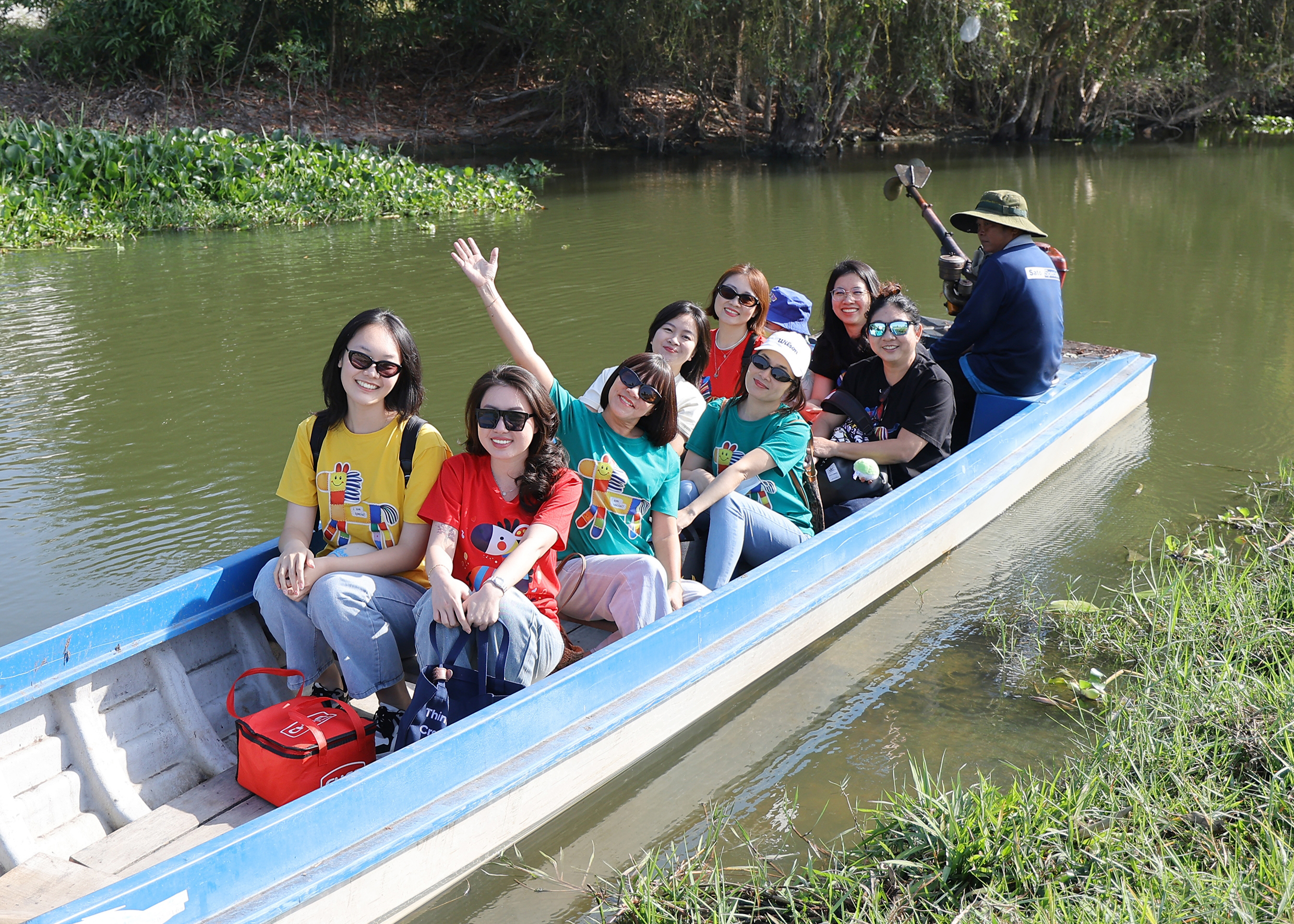 Thay vì chen chúc phố xá, du khách được ngồi tàu máy len lỏi giữa rừng tràm,
