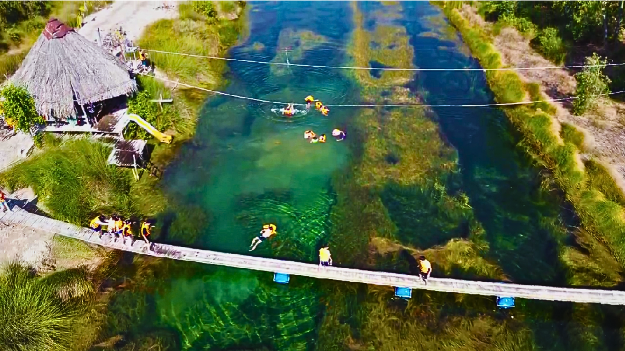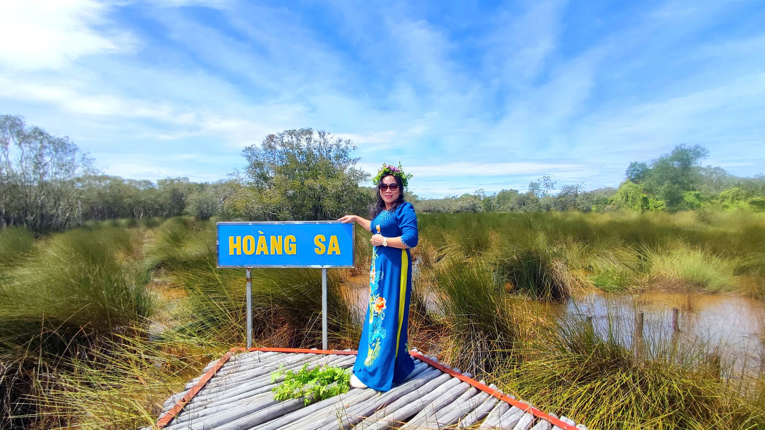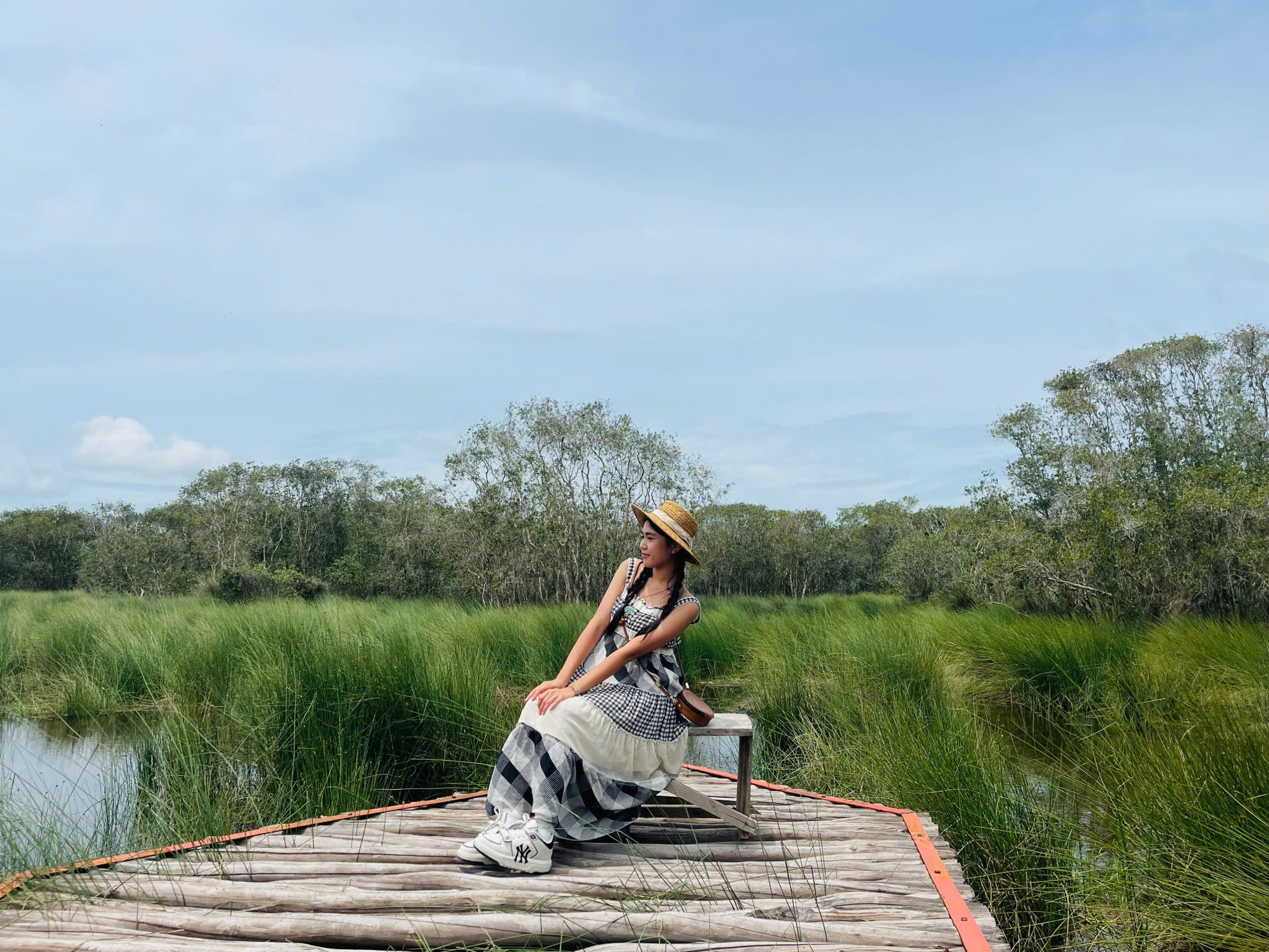 Giữa bạt ngàn cỏ bàng xanh mướt, cây cầu gỗ uốn lượn mô phỏng bản đồ Việt Nam mang đến cho bạn cảm giác như đang đặt chân qua từng vùng miền Tổ quốc. Mỗi điểm dừng trên cầu là một khung hình tuyệt đẹp để lưu lại kỷ niệm.