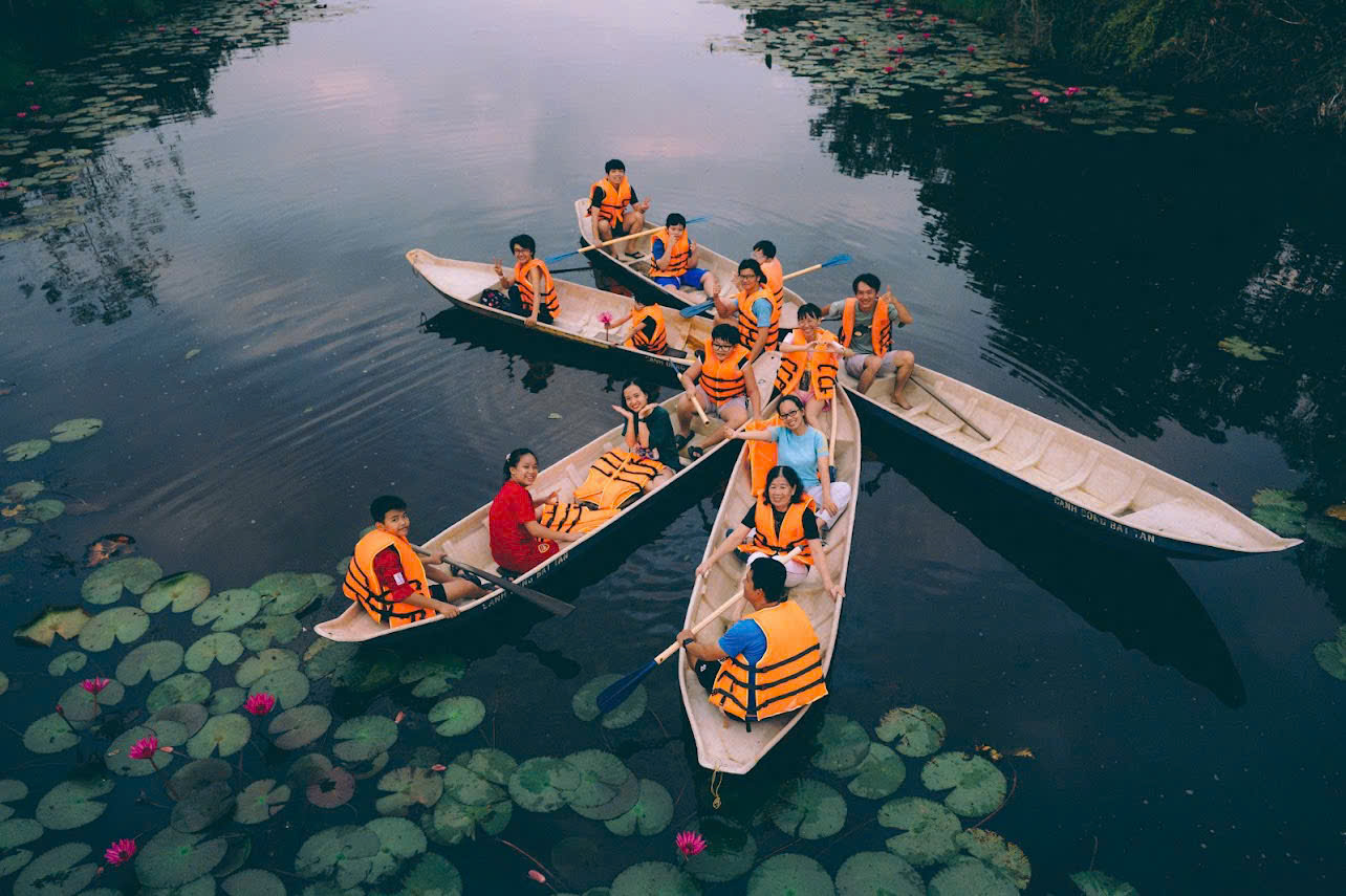 Bên cạnh những điểm check-in độc đáo, du khách còn có thể hoà mình vào vô vàn trải nghiệm gắn liền với thiên nhiên: ngồi tàu len lỏi giữa rừng dược liệu xanh mát, thong dong đạp xe men theo bìa rừng tràm, hay thả mái chèo xuồng ba lá trên con nước hiền hoà hay câu cá giải trí trên những con kênh, rạch nhỏ trong rừng. Mỗi hành trình đều mang lại sự thư thái, giúp bạn rời xa ồn ào phố thị để tìm lại nhịp sống chậm rãi, gần gũi với đất trời Đồng Tháp Mười.