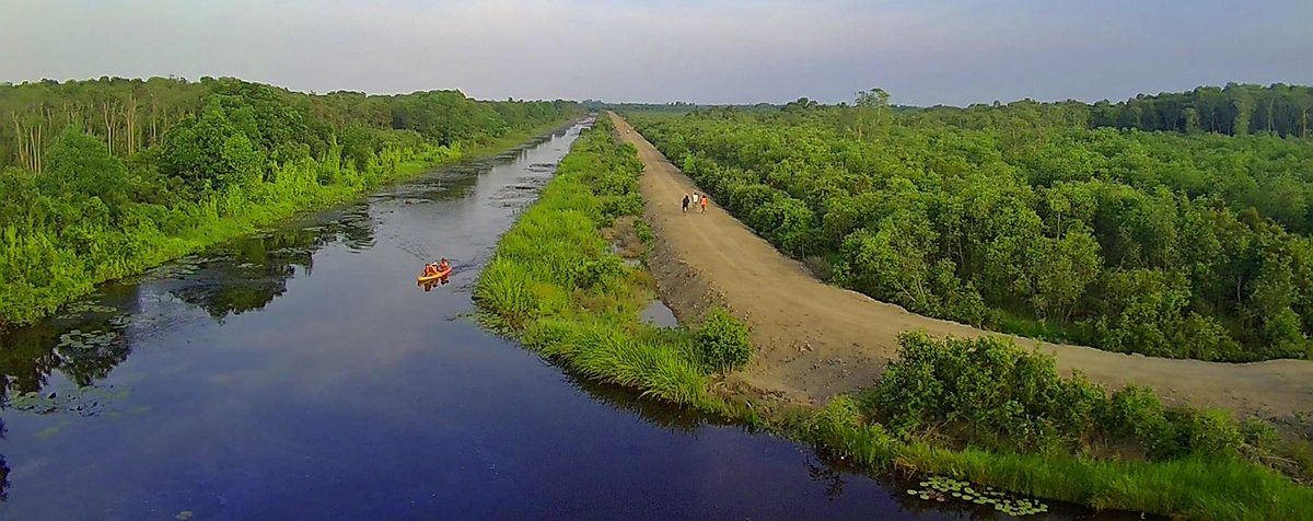 Giữa bạt ngàn cỏ bàng xanh mướt, cây cầu gỗ uốn lượn mô phỏng bản...