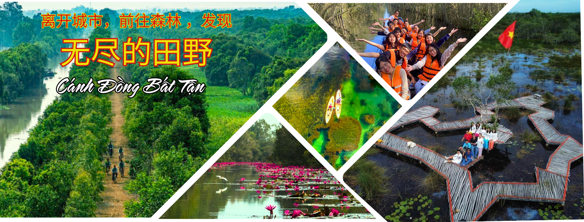 无尽田野地址:Long An 省, Mộc Hóa 县, Bình Phong Thạnh 镇, 10 大街. Dong Thap Muoi 药材保护与发展研究中心 的 无尽田野 旅游区. 这里拥有1000多公顷的 原始白千层森林,树龄近百年。不仅如此,这里还是80余种珍稀药材的繁育保护区。因此,这里又被称为“药用森林”。